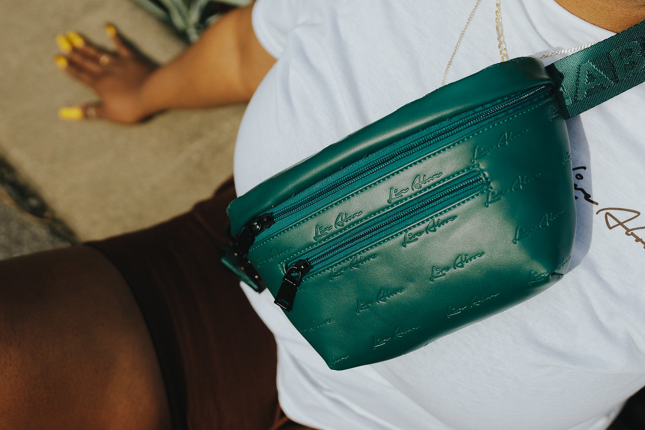 New this season comes our LA crossbody bag in Midnight Green. Crafted in premium vegan leather with our signature ‘Live Above’ logo embossed throughout. This bag features our well designed steel buckle for a secure fit, made to adjust for any size. The LA crossbody bag is perfect for travel and daily activities to keep your personal items protected. The adjustable Live Above knitted strap allows for the bag to be worn as a crossbody, over the shoulder or as a waist bag. The style is limitless