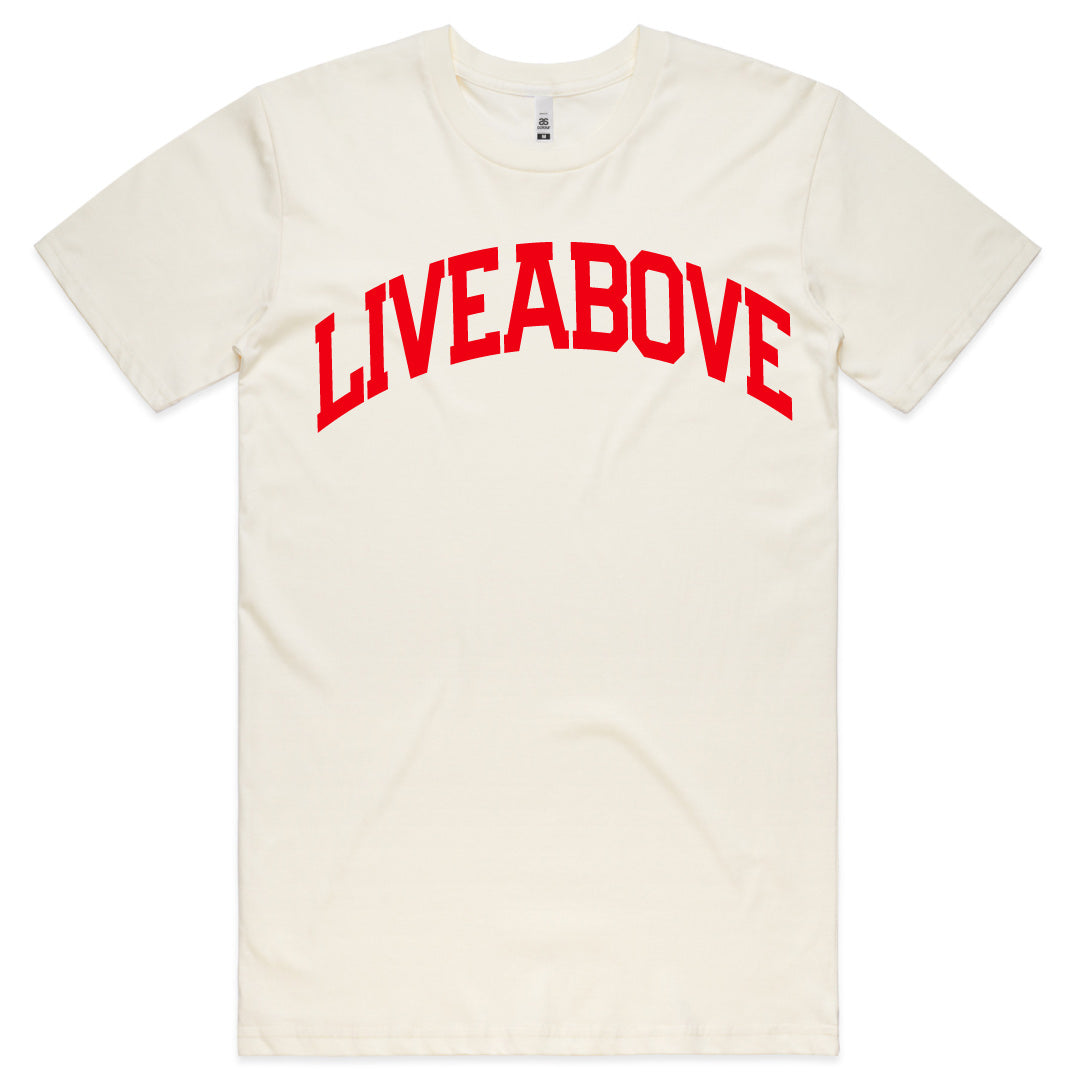 T-shirts should make you feel good, so we created the best feeling shirt to do just that. The Live Above Arch logo tee White/Red was crafted with the utmost attention to detail, showcasing our iconic logo in a minimalist yet captivating arch design, symbolizing the upward journey to greater heights. Inspiring you to Live Above